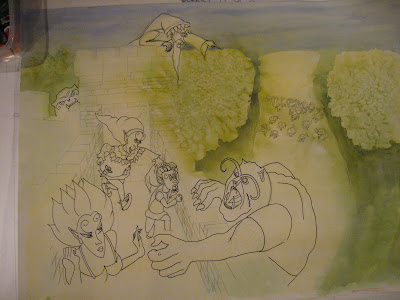 la première version, pas assez dynamique a servi à mettre en scène les personnages, et dans la seconde je les ai replacé après un changement de décor.