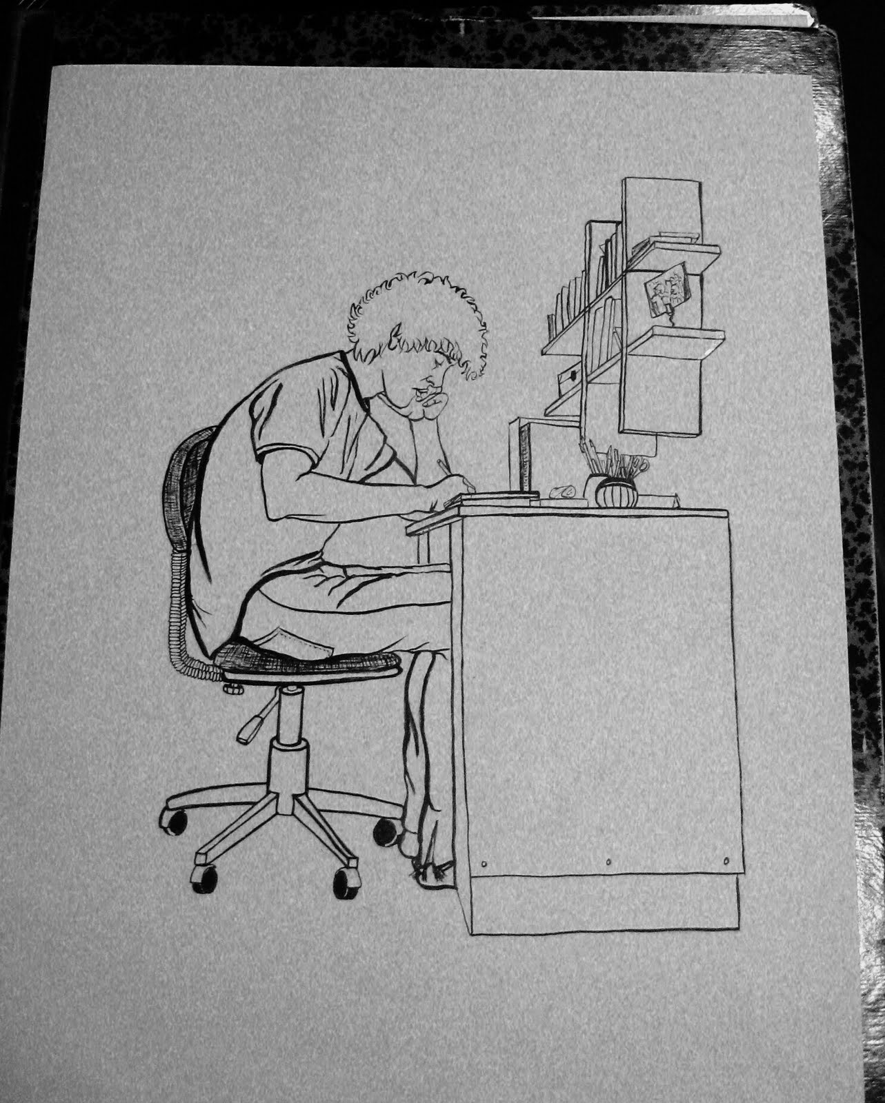 Julie> bin, je nettoie…Je commence par un croquis cracra, avec des loupés dedans, et après je le reprends et je le mets au propre. Et le jour ou je le fais comme ça directement, bin c'est pas demain la veille quand même !