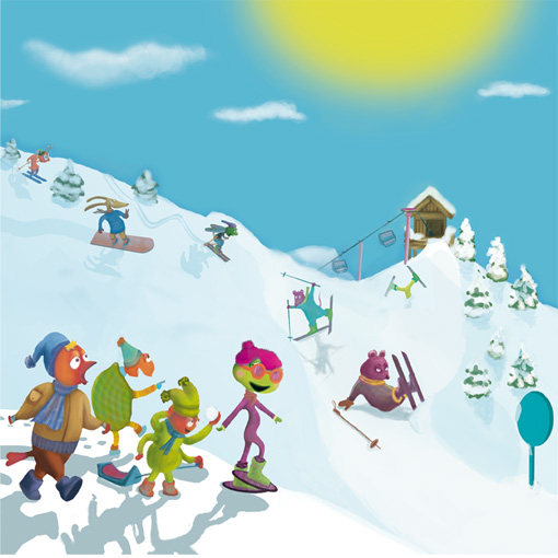 Raaa, c’est énervant…Moi aussi, pour voir ton com, je dois « actualiser ». Sinon, côté illu, merci pour le chamoureux aux yeux de chien battu. Les skieurs ont eu droit à pas mal de reprises effectivement, là, une recomposition pour modif de format et quelques retouches. La troisième illu est en cours, une nouvelle pour l’occasion.