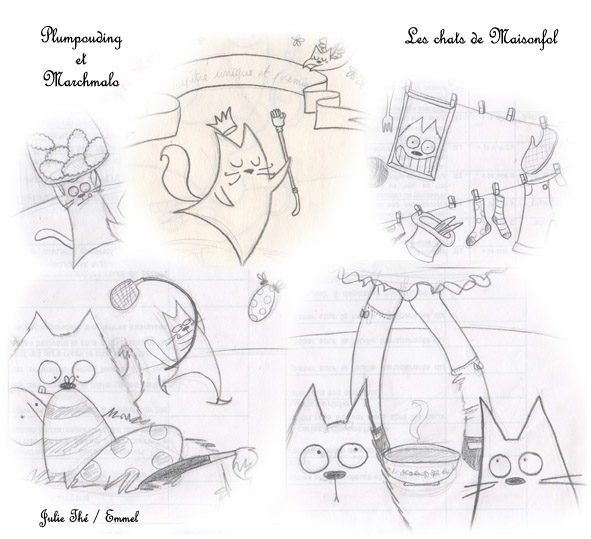 Les chats de Maisonfol prennent la pose sous les crayons de Julie ! Un projet jeunesse en préparation dont voici quelques petits bouts juste pour vous donner envie d’en voir plus ! C’est drôle, absurde, plein de vie, tout ce qu’on aime. Bref, on ne s’ennuie pas…^^