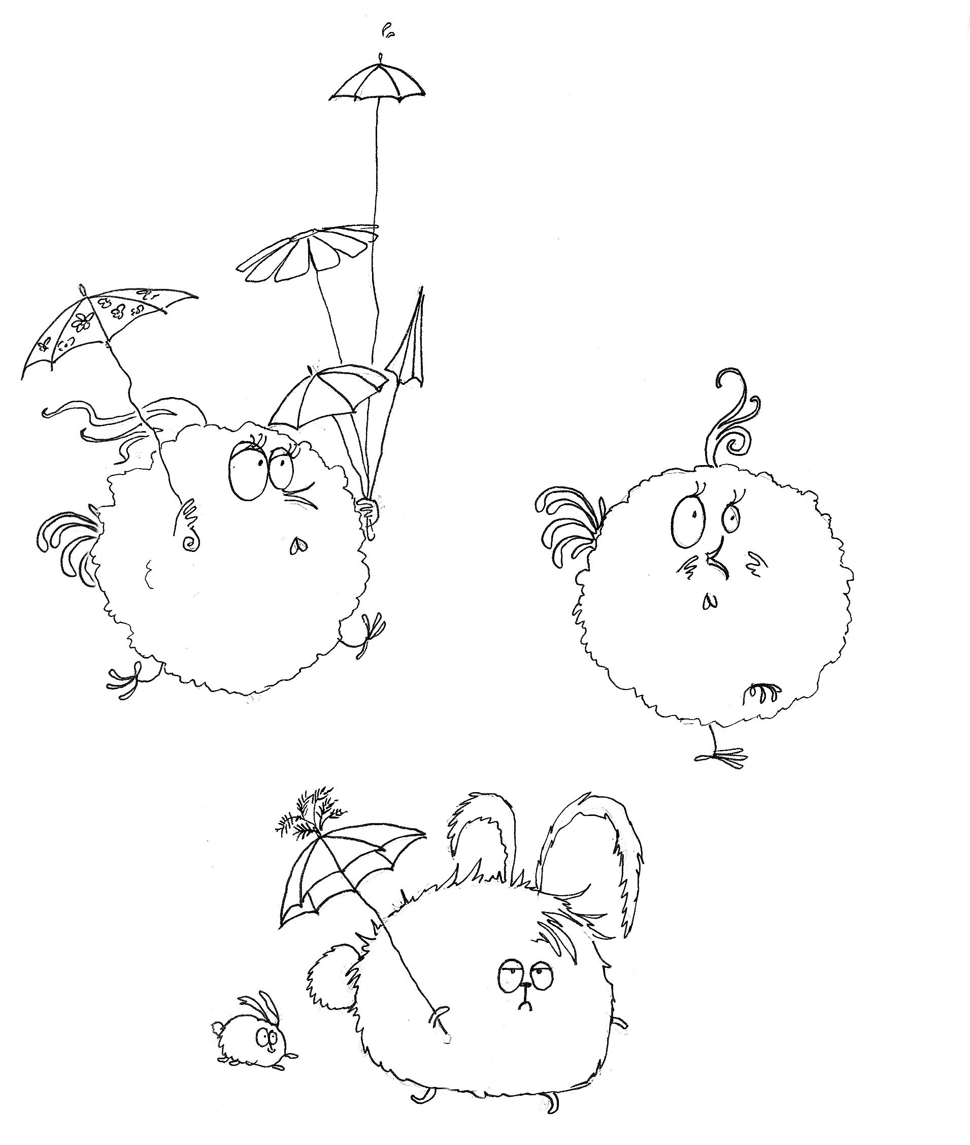 Elle a un parapluie-ombrelle très inspirant (un peu moisi parfois, mais ravissant ! ). Nous avons participé à un festival ensemble, elle dédicace des albums avec des poules rigolotes…et ploc !