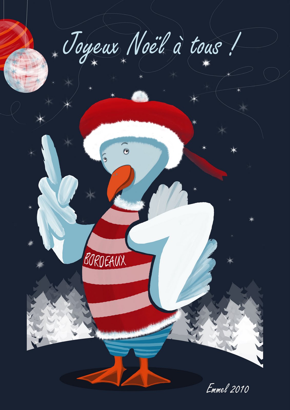 Pourquoi une mouette ? Pourquoi Bordeaux ? Raaa, un chtit clin d’oeil à l’album en préparation avec ces messieurs Bast et Matyo qui m’ont invitée à une co-scénarisation des « Historiettes de Bordeaux 2 », et l’album avance…C’est aussi ça Noël ! ^^