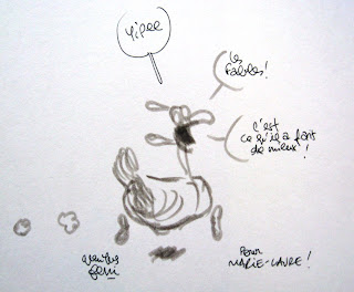 Ha, et aussi, quel plaisir de rencontrer des gens dont on aime le travail , et mieux encore, de passer un excellent moment lors d’une dédicace ! Et bien ce fut le cas avec monsieur Jean Yves Ferri, avec qui l’échange fut vraiment drôle…Comme je lui disais, j’aurais quand même été déçue de tomber sur un individu austère et taciturne…Il m’a confié que dans la vie c’est ce qu’il était, mais qu’il faisait un effort sur les festivals… :))