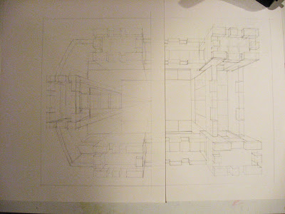 Au final, il y aura 4 morceaux puisqu’il sera plié. Cette technique a l’avantage de me faciliter la gestion du dessin et de la mise en couleur.